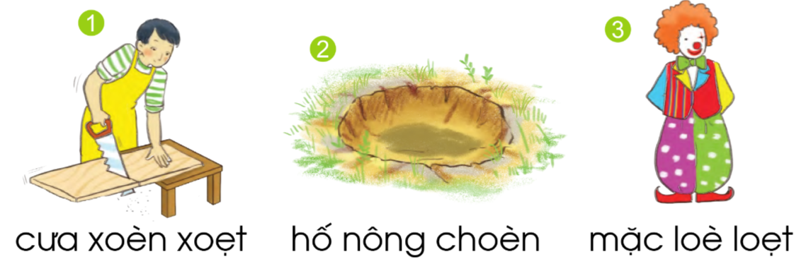 Tiếng nào có vần oen? Tiếng nào có vần oet? Ghép đúng. Tập đọc: Chú hề. Nói tiếp những từ ngữ tả chú hề.