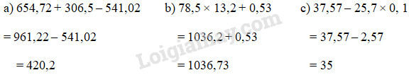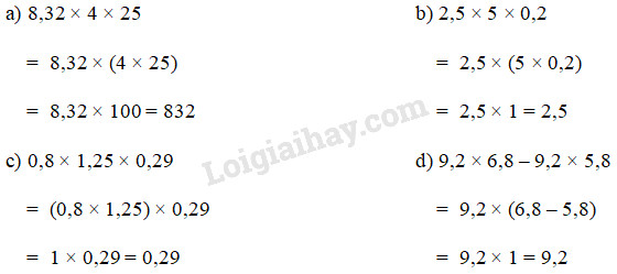 Áp dụng các tính chất của phép nhân các số thập phân: