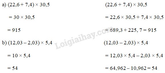 \(a)\; (22,6 + 7,4) × 30,5\)                            \(b)\; (12,03 – 2,03) × 5,4\)