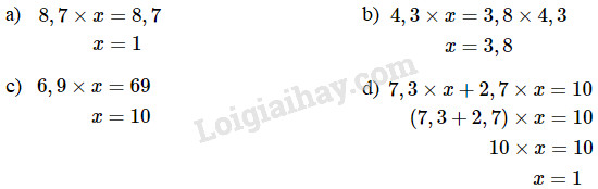 \(b) \;4,3 \times x = 3,8 \times 4,3\)