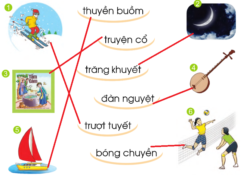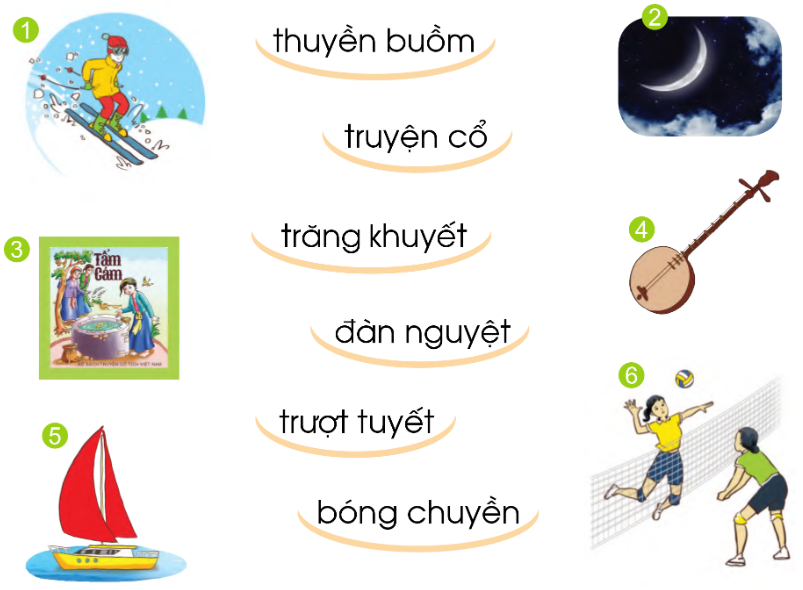 Ghép chữ với hình cho đúng. Tập đọc: Vầng trăng khuyết.