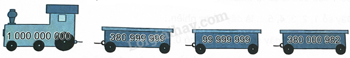 Vậy các số ghi trên đầu tàu và toa tàu sắp xếp theo thứ tự từ lớn đến bé là: 1 000 000 000; 380 999 999; 380 000 982; 99 999 999.