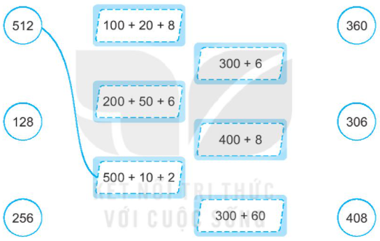 Nối mỗi số với tổng các trăm, chục, đơn vị thích hợp.