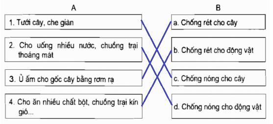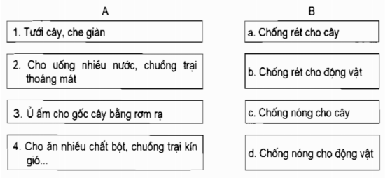 Nối ô chữ ở cột A với ô chữ ở cột B cho phù hợp.