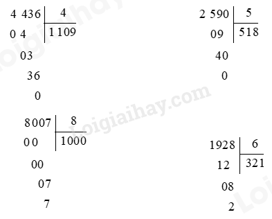 Đặt tính rồi thực hiện chia lần lượt từ trái sang phải.