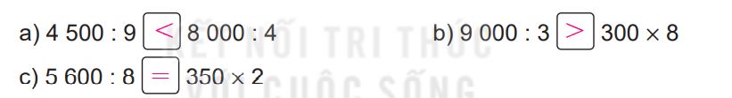 Tính nhẩm kết quả hai vế rồi điền dấu thích hợp vào ô trống.