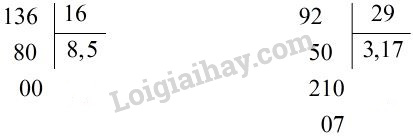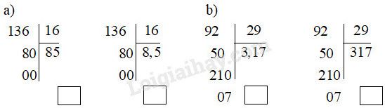 *) Lưu ý: Để tìm số dư ta dóng thẳng cột dấu phẩy ở số bị chia xuống vị trí của số dư để tìm số dư của phép chia.