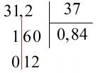 C. \(31,2:37 = 0,84\) (dư 0,12)