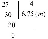 Vậy:     \( 27 : 4 = 6,75 \;(m)\).