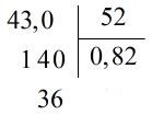 Đặt tính rồi tính như phép chia \(43,0 : 52\) (chia số thập phân cho số tự nhiên).
