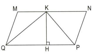 Cho hình bình hành MNPQ (xem hình vẽ) có MN = 12cm, chiều cao KH = 6cm. So sánh diện tích hình tam giác KQP với tổng diện tích của hình tam giác MKQ và hình tam giác KNP.