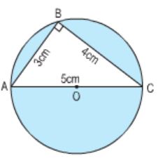 – Diện tích phần đã tô màu của hình tròn = diện tích hình tròn tâm O \(-\) diện tích tam giác ABC.
