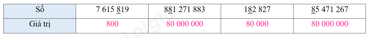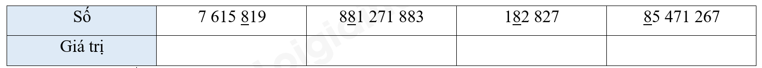 Viết giá trị của chữ số được gạch chân trong mỗi số ở bảng sau.