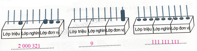 c) Đếm thêm 100 000 000 rồi điền số còn thiếu vào chỗ trống.