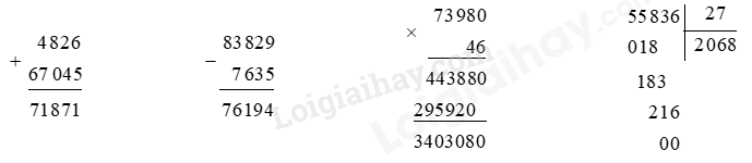 – Phép cộng, phép trừ, phép nhân: tính lần lượt từ phải sang trái