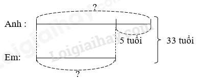 – Tìm số tuổi của hai anh em hiện nay = số tuổi của hai anh em cách đây 5 năm + 10