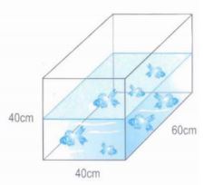 – Tính thể tích bể cá = chiều dài × chiều rộng × chiều cao.