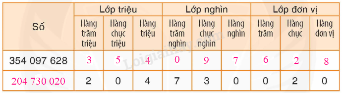 – Xác định hàng của mỗi chữ số rồi điền vào bảng