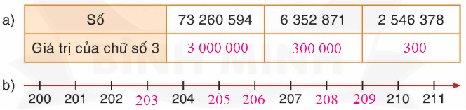 a) Xác định hàng của chữ số 3 trong mỗi số từ đó tìm được giá trị tương ứng.
