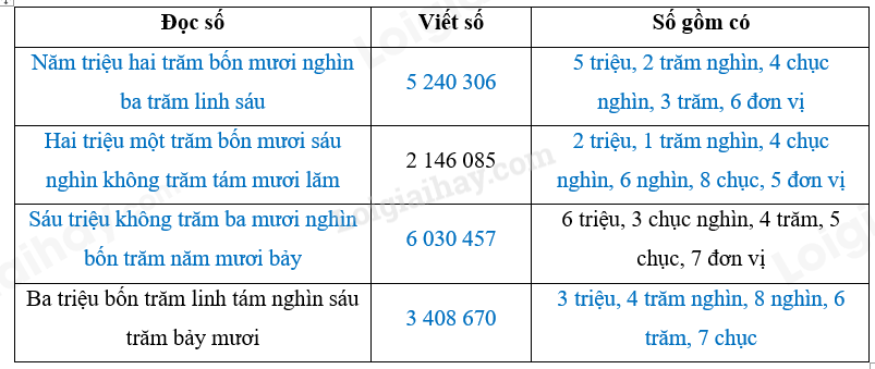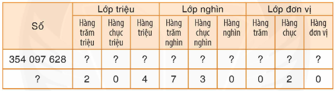 – Xác định hàng của mỗi chữ số rồi điền vào bảng