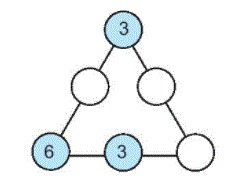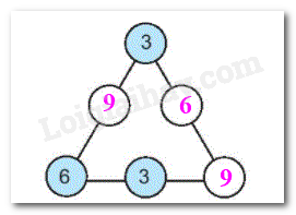 Vì tổng ba số trên mỗi hàng đều có kết quả bằng 18 nên ở hai cạnh của tam giác ta có