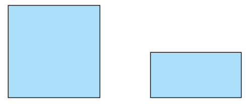Tô màu vàng vào hình vuông, màu xanh vào hình chữ nhật.