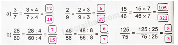 – Nếu nhân cả tử số và mẫu số của một phân số với cùng một số tự nhiên khác 0 thì được một phân số bằng phân số đã cho.
