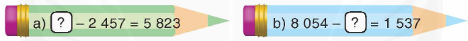 a) …… – 2 457 = 5 823