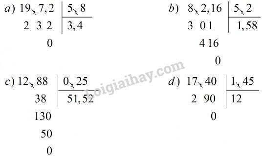 c) \(12,88 : 0,25\);                                          d) \(17,4 : 1,45\).