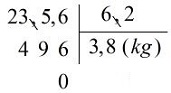 Vậy:        \( 23,56 : 6,2 = 3,8\; (kg)\)