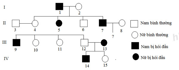 (1)Xác suất sinh con trai mắc bệnh hói đầu của cặp vợ chồng II.7 và II.8 là 70%.