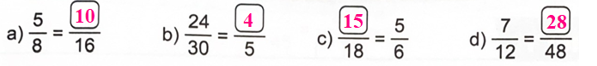 – Áp dụng tính chất cơ bản của phân số để tìm các số bị che lấp.