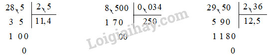 – Bỏ dấu phẩy ở số chia rồi thực hiện phép chia như chia số tự nhiên.