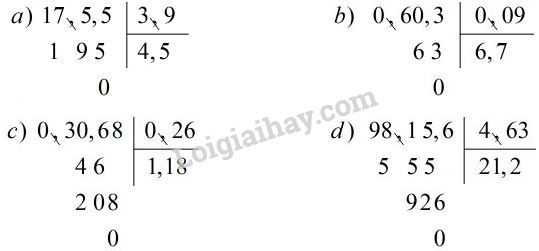 Đặt tính rồi tính: a) 17,55 : 3,9; b) 0,603 : 0,09;