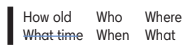 (Chọn các từ câu hỏi đúng để hoàn thành câu hỏi 1-6.)