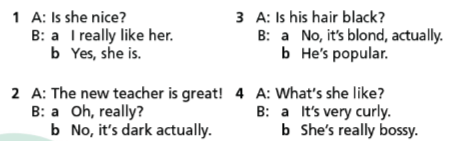 1. A: Is she nice? (Cô ấy có tốt không?)