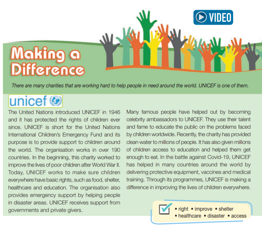 Có rất nhiều tổ chức từ thiện đang nỗ lực để giúp đỡ những người gặp khó khăn trên khắp thế giới. UNICEF là một trong số đó.