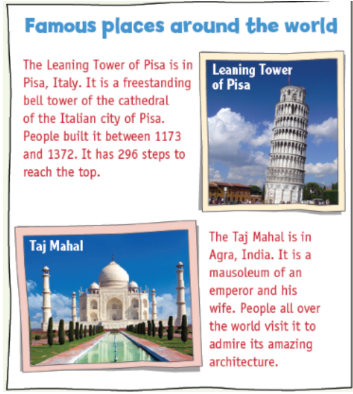 8. Collect information, then prepare a poster about famous places around the world. Use the poster to present the places to the class.
