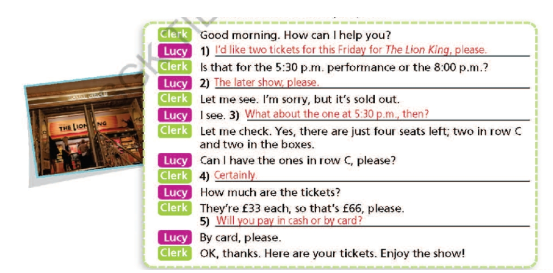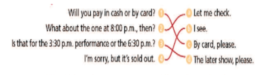 Buying tickets for a performance.(Mua vé cho một buổi trình diễn)