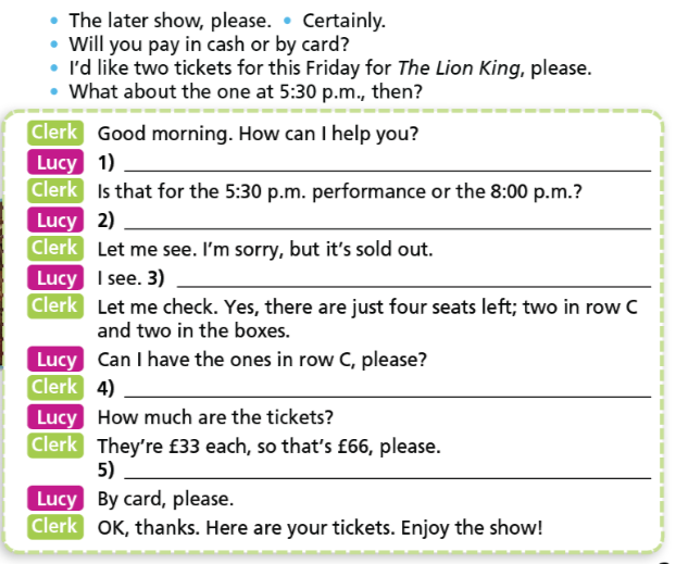 3. Complete the dialogue with the sentence below. Read the dialogue aloud. Mind the sentence stress.