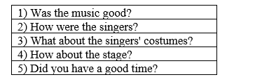 Taya: Thật tuyệt vời! Âm nhạc của buổi hòa nhạc này hay hơn so với âm nhạc của buổi hòa nhạc năm ngoái vì có nhiều ban nhạc nổi tiếng biểu diễn hơn.