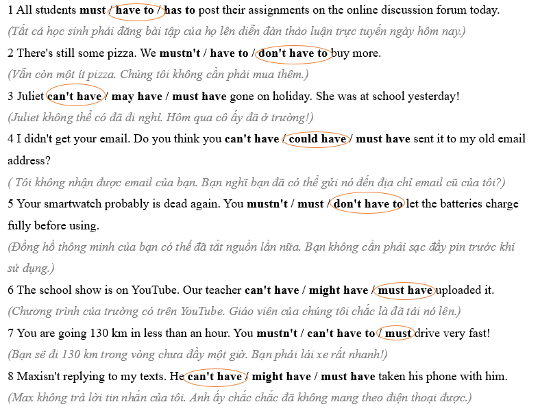 3 Juliet can’t have / may have / must have gone on holiday. She was at school yesterday!