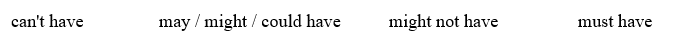 – động từ khiếm khuyết + have V3/ed: dự đoán một việc trong quá khứ.