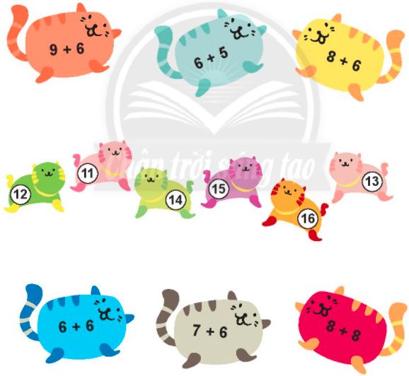Tính nhẩm các phép tính, từ đó ta tìm được mèo con cho mèo mẹ.