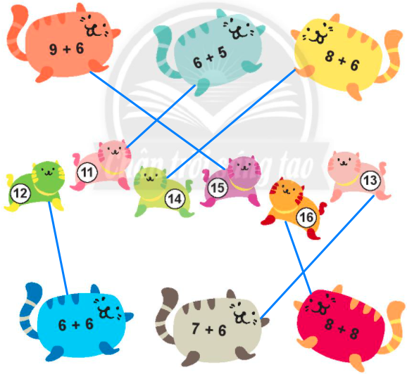 Tính nhẩm các phép tính, từ đó ta tìm được mèo con cho mèo mẹ.
