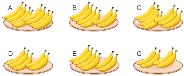 Đếm số quả chuối có trong mỗi đĩa ta có kết quả: