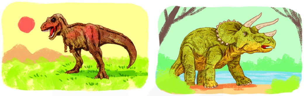 – Loài vật trong tranh là khủng long. Em đã thấy khủng long trên sách báo và phim hoạt hình.
