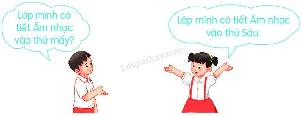 – Hỏi: Lớp mình có tiết Mĩ thuật vào thứ mấy?