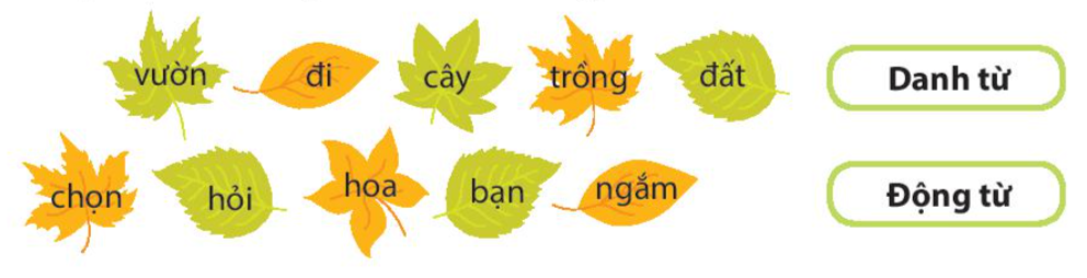 – Danh từ: vườn, cây, đất, hoa, bạn