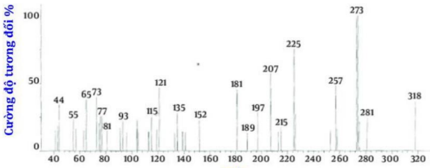 Phenolphthalein (X) là chất chỉ thị màu, thường được dùng trong chuẩn độ acid – base. Trong X, tỷ lệ khối lượng của các nguyên tố là: \({m_C}:{m_H}:{m_O} = 60:3,5:16\). Biết phổ khối lượng của phenolthalein như hình dưới đây. Số nguyên tử carbon có trong X là: